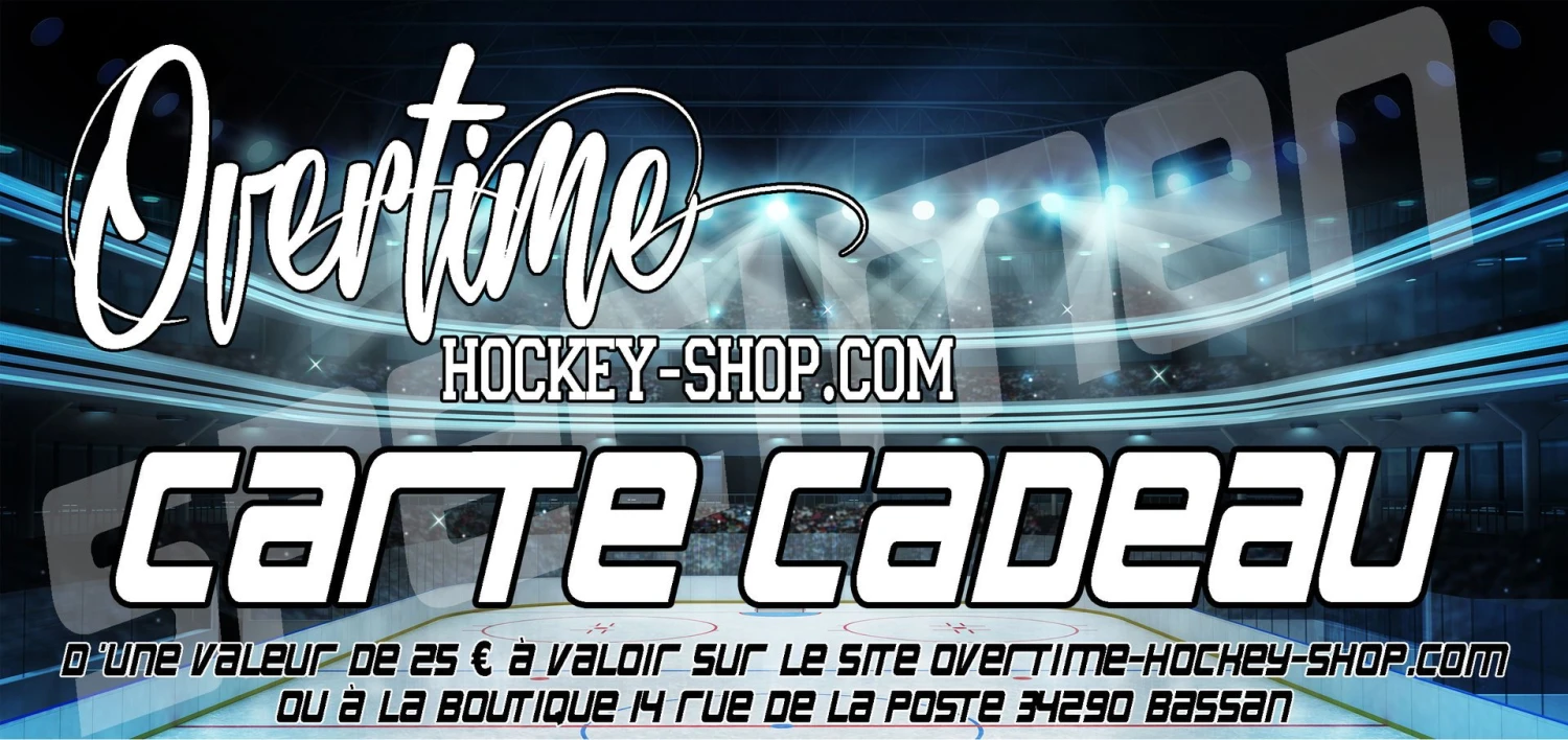 Carte cadeau d’une valeur de 25€ à utiliser sur le site overtime-hockey-shop.com